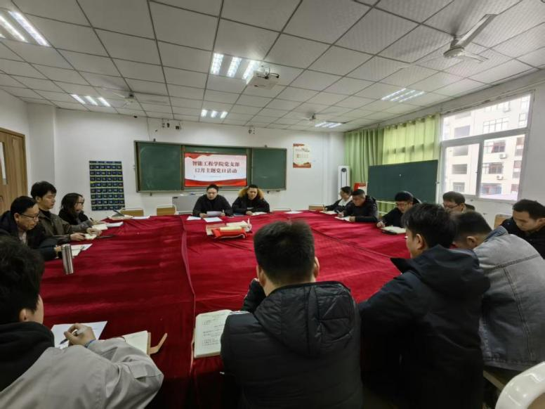 2025年12月18日,智能工程学院党支部在学院党员活动室开展了12月主题党日活动。会议主题为“总结反思促提升 开局蓄力建新功”由党支部书记郭人源主持,全体党员同志参加。